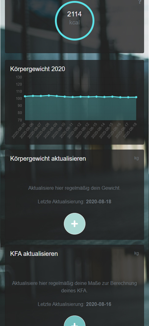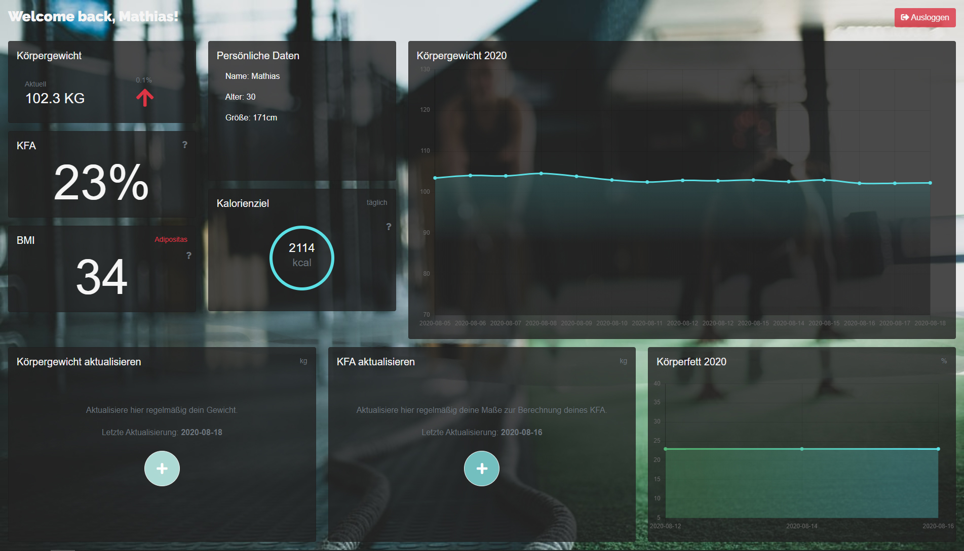 Mit FITSTATS hast du stets dein aktuelles und vergangenes Körpergewicht, Körperfettanteil uvm. im Blick.